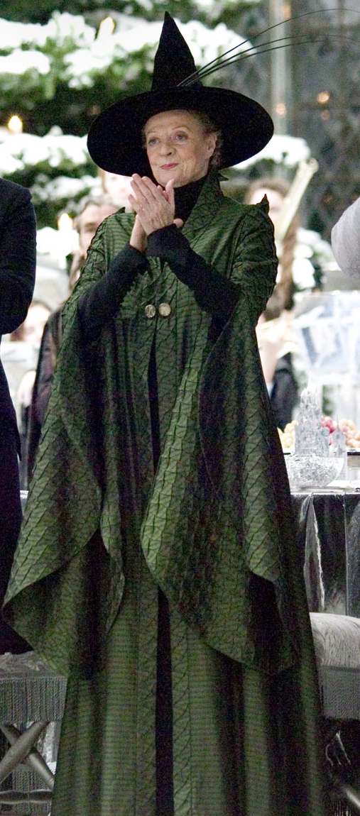 But then it would have been confusing, because she's wearing a green coat that almost makes her look like McGonagall. Also this isn't the silly costume with the white fringe everywhere which was the point.